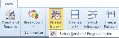 To make a snapshot of a version, click Freeze version; the version is re-indexed and computed. A frozen version cannot be deleted and nothing can be changed in it. The frozen versions show in boldface type in the list. An extra icon shows in the right bottom corner.