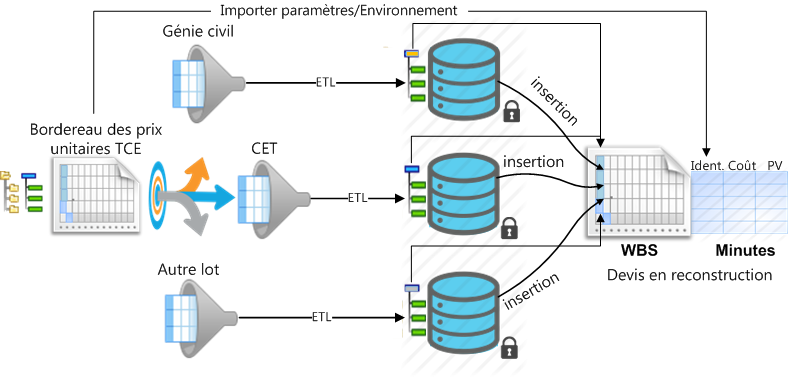 Nous reconstruisons le devis par insertion des ouvrages dans la vue des minutes. Nous n'utilisons pas de coefficient de marché.