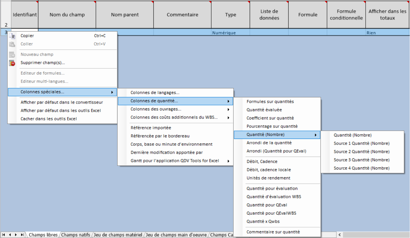 Pour créer des champs libres spéciaux :