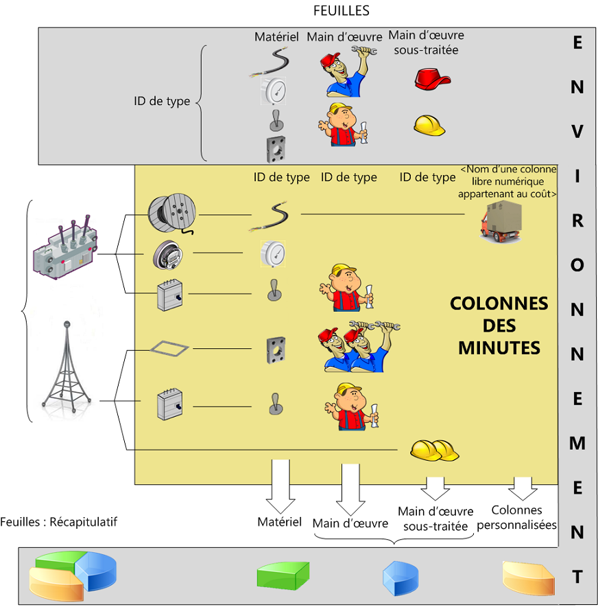 Le classeur d'environnement définit des barèmes pour passer des coûts ou prix de revient aux prix de vente. Ces barêmes définissent des types de ressources utilisés par les minutes. Inversement ces barèmes font la synthèse de données venant des minutes et du WBS.